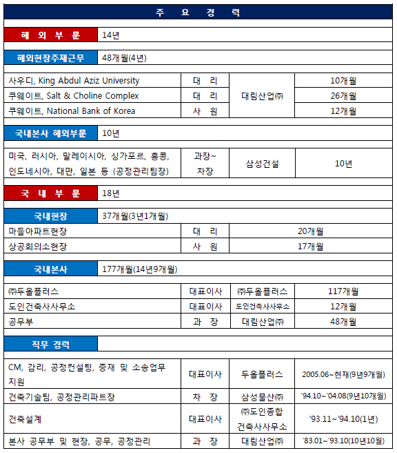 해외건설 베테랑이 고객사의 프로젝트 성공에 기여합니다.
